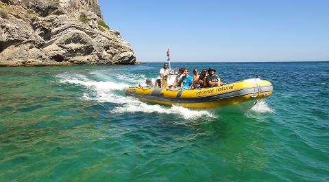 Passeio em barco semirrígido ao longo da linha de costa da Arrábida, na área do Parque Marinho Prof. Luiz Saldanha.